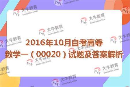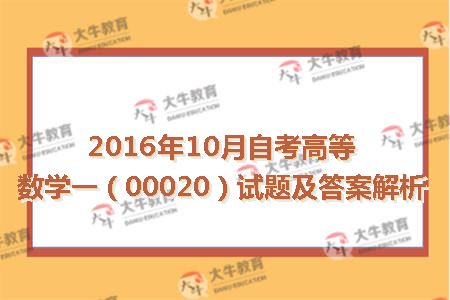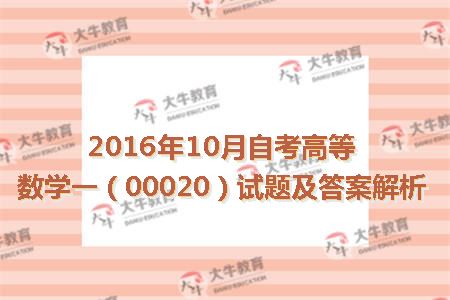 2016年10月自考高等数学一(00020)试题及答案解析