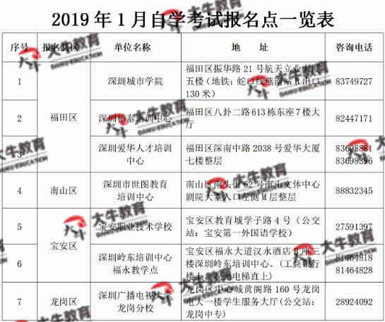 一、2019年1月深圳自考报名时间: