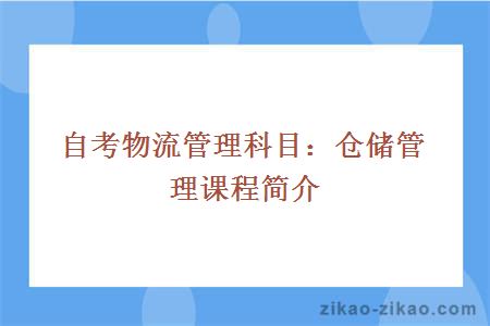 自考物流管理科目:仓储管理课程简介