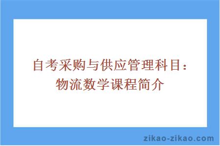 自考采购与供应管理科目:物流数学课程简介