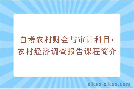 自考农村财会与审计科目:农村经济调查报告课程简介