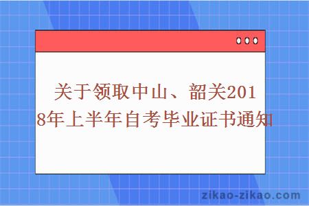 关于领取中山、韶关2018年上半年自考毕业证书通知