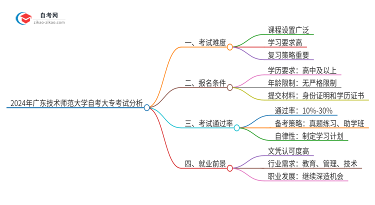 2024年广东技术师范大学自考大专的考试难度相对较高,主要体现在以下几个方面: