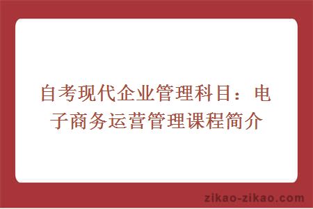 电子商务运营管理是广东省高等教育自学考试现代企业管理(独立本科段)的专业必考的专业课,是为了培养...【详情】